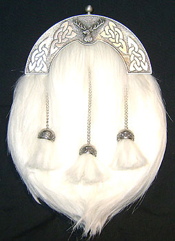 Dress sporrans > Celtic Stag crossed/straight faux fur - white - Vegetarian Sporrans - Vegan animal free leather sporrans and belts